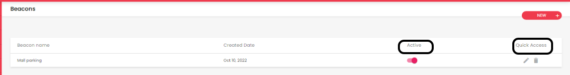 You have quick access to remove or modify added beacons and you can also inactive/active beacons by clicking on the Active toggle button.